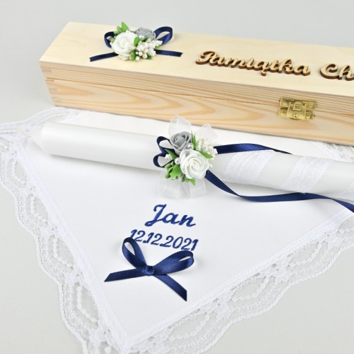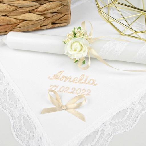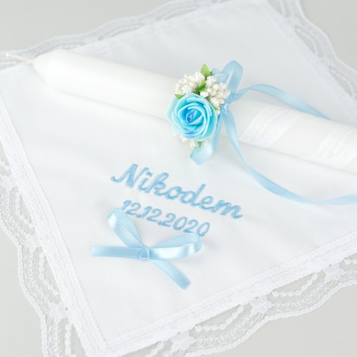 ОДЯГ + СВІЧКА на хрещення - СИВА ВИШИВАНКА і БІЛІ ТРОЯНДИ
