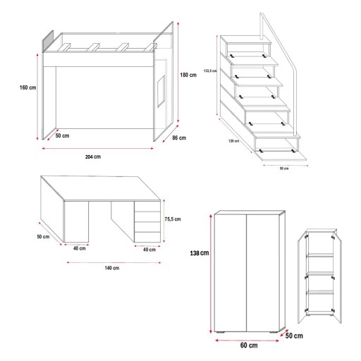 Крісло характеризується сучасним дизайном і точною виготовленням, що забезпечує винятково хороший сон і гарантію безпеки і впевненості, що ваша дитина прокинеться відпочилою. Фасади гарнітура виготовлені з глянцевої меблевої плити МДФ насичених кольорів, що дозволяє підібрати меблі до будь-якого приміщення. Верхня поверхня для сну і сходинки біля ліжка оснащені огорожею, щоб захистити дитину від випадання.