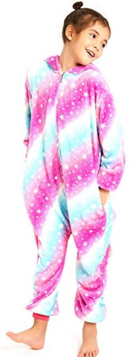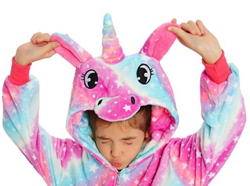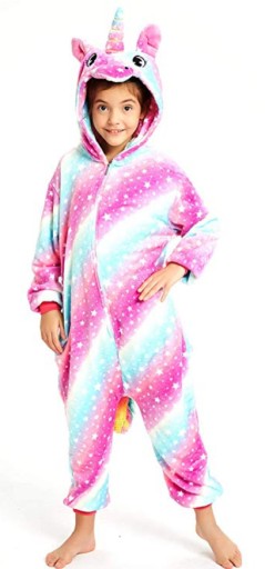 - Піжама з капюшоном, рогом єдинорога на капюшоні, вушками і красивою райдужною гривою.