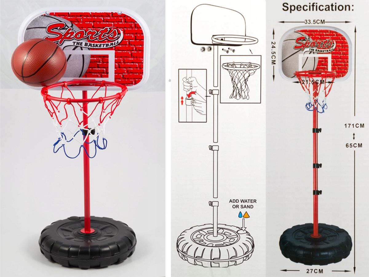 ZESTAW DO KOSZYKÓWKI DO 171CM TARCZA KOSZ PIŁKA