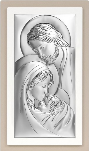Срібна картина образу Пресвятої родини. Ідеальний подарунок на народження дитини, на Хрещення, для нареченої з нагоди весілля, на річницю весілля або як сувенір для батьків нареченої.