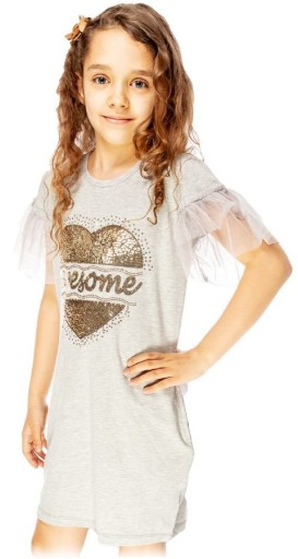 вирізати: сукня з короткими фатиновими рукавами та золотистими блискітками спереду. Крій тюльпан, з боків прорізні кишені
