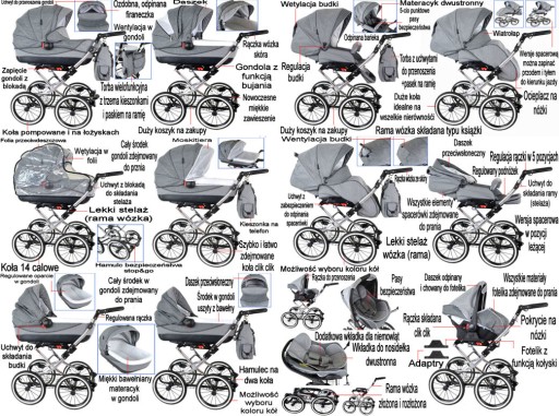 Параметри візкаШирина люльки всередині - 36см Глибина люльки - 25см Довжина люльки всередині - 80см Довжина люльки зовні - 85см Загальна висота коляски - 124см Висота візка до ручки -104см Висота рами візка (у складеному вигляді) 22см Вага візка - близько 15КгПараметри коляскиДовжина сидіння 32см Довжина спинки 42см Ширина всередині сидіння 35см Довжина підніжки 20см Автокрісло (переноска) Омологація - R44/04 Призначено для дітей Вага від 0 до 10кг Вага автокрісла -2,8кг