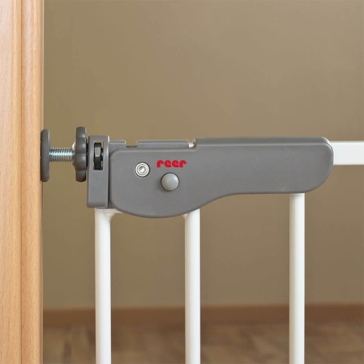 Сертифіковані захисні ворота для сходів від німецької компанії Reer. Покращена система безпеки. Це обмежує небезпечні переходи для дитини та захищає її від нещасних випадків. Підходить для встановлення у верхній частині сходів. Колір: білий. Регульована ширина: 73-110 см.