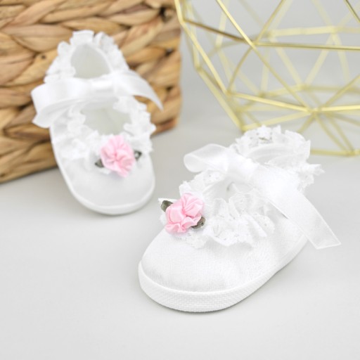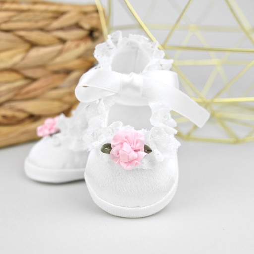 КОЛІР: білий атлас + біле мереживо + рожева троянда