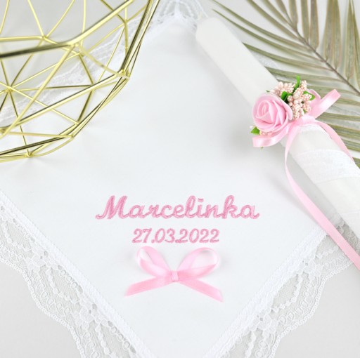 Троянда на туфельках такого ж кольору, як і стрічка в нашому наборі: "Рожева вишиванка халат і свічка" :)