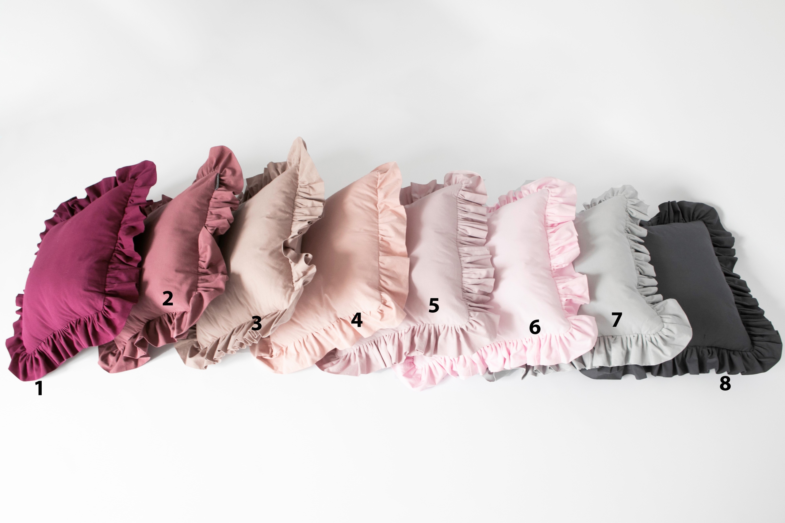 Przedmiotem aukcji jest poduszka z falbanką szyta razem z wypełnieniem o wielkości 40x40 cm