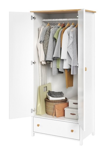 SO-01 2-дверна шафа, 1x великий ящик внизу. По центру вгорі є вішалка для одягу. Розміри 85х186х52 см.