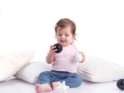 Набір з чотирьох м'яких сенсорних м'ячівпризначений для вправ сенсорної інтеграції та розваг. Кожна кулька має різний розмір і різну текстуру, завдяки чому забезпечує різні відчуття. Сенсорні м'ячі Tullo рекомендовані фізіотерапевтами для масажу немовлят для зняття м'язової напруги. Чорно-біле поєднання чудово стимулює зір малюка, який ще не вміє розрізняти кольори. Сенсорні кульки Tullo не мають отвору, завдяки чому ідеально підходять для купання. Вода не потрапляє всередину, і діти мають контакт лише із зовнішнім шаром іграшки. Це ще більше гігієни для вашого малюка.