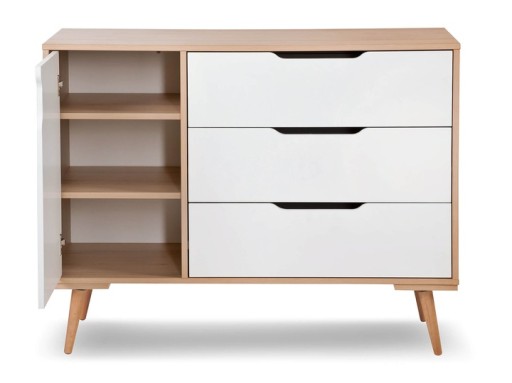 Комод SOFIE - це поєднання сучасного дизайну та функціональності. Поєднання білого і букового відтінку радує око навіть найвимогливіших. Полиці, що замикаються, і три містких ящика стануть зручністю для багатьох молодих мам. Комод SOFIE також сумісний із пеленальним майданчиком, який може виявитися безцінним на ранніх етапах життя дитини.