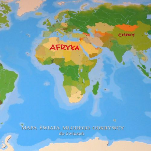 Географічний столик з картами світу для дітей, з освітньою та декоративною роллю. Континенти разом із формами рельєфу, а також найвідоміші будівлі у світі, тварини, природні пам’ятки та події позначено барвистими піктограмами. Завдяки цьому карта є захоплюючим джерелом знань про історію та сьогодення нашої планети. У цікавій формі подається інформація про географію, природу та культуру. Він стимулює уяву, заохочує здобувати знання та надихає. Це також чудовий привід, щоб творчо провести час разом між батьками та дітьми. Якість і естетичність виконання роблять його прикрасою дитячої кімнати. На іншій стороні блокнота зображено політичну карту без піктограм із позначеними точками, що відповідають розташуванню столиць окремих країн. Це робить карту ідеальним інструментом для вивчення географії. Окремі точки та країни можна описати за допомогою сухостираючих маркерів, а ламінатне покриття забезпечує довговічність карти.