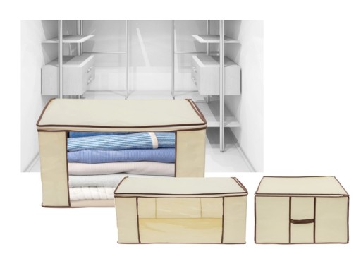 Ящики виготовлені з екологічного матеріалу NONWOVEN PP вагою 80 г/м2. Відповідне каландрування та розташування волокон забезпечує відмінний повітрообмін упакованих виробів і водночас ідеальний захист від пилу, бруду, кліщів, комах тощо. Нетканий матеріал нетоксичний і не має неприємного запаху. Вікно виготовлено з безфталатної ПВХ-плівки