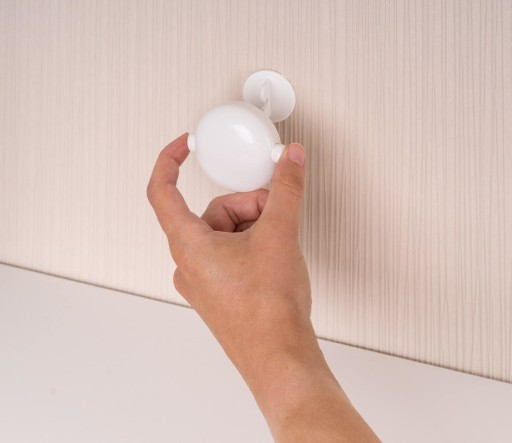 - Коли тимчасово немає необхідності фіксувати шафу, круглий замок можна відстібнути і прикріпити, наприклад, до шафи на приклеєний туди гачок (входить в комплект).