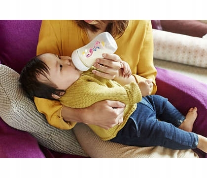 Dzięki wyjątkowemu kształtowi butelkę można łatwo chwycić i skierować w dowolną stronę, co zapewnia maksymalną wygodę nawet malutkim rączkom dziecka.