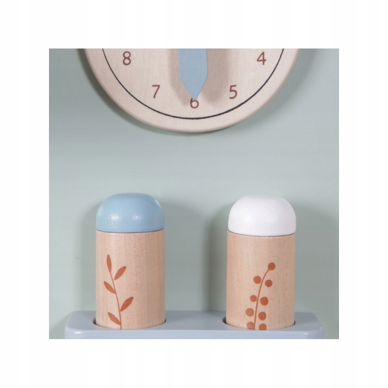 Kuchnia to nowość z propozycji marki Little Dutch. Jest pięknie wykonana, z wyjątkowo polerowanego i delikatnego drewna. Dodatki w kolorze delikatnego, pastelowego błękitu i mięty, sprawiają, że będzie ona idealna zarówno dla dziewczynek, jak i dla chłopców. Kuchenka składa się z piekarnika z drzwiczkami, półeczek, metalowego zlewu z kranikiem oraz dwóch palników. W skład zestawu wchodzą: garnuszek, patelnia, rękawica kuchenna, 3 łyżki, pieprzniczka i solniczka. W skład zestawu dodatkowo, wchodzą białe, plastikowe nóżki, które można założyć w celu podwyższenia kuchenki (6 cm) dla wyższego dziecka