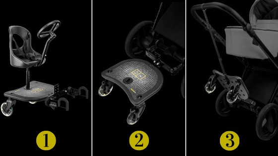 - Duża powierzchnia antypoślizgowa platformy redukuje ryzyko poślizgnięcia się dziecka na platformie oraz odblaskowe elementy dla dodatkowego bezpieczeństwa dziecka