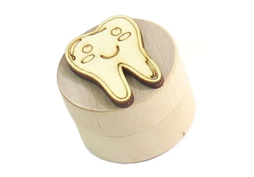 Пропонуємо пам'ятну круглу коробочку на перший зубок нашої дитини, з декором усміхнений зубок.