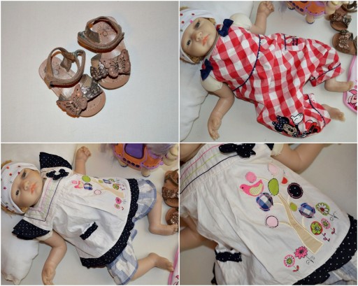 У набір входить одяг, показаний на фото нижче (крім дитини та іграшок), весь одяг розмірів 6-9-12 м (74-80 см).