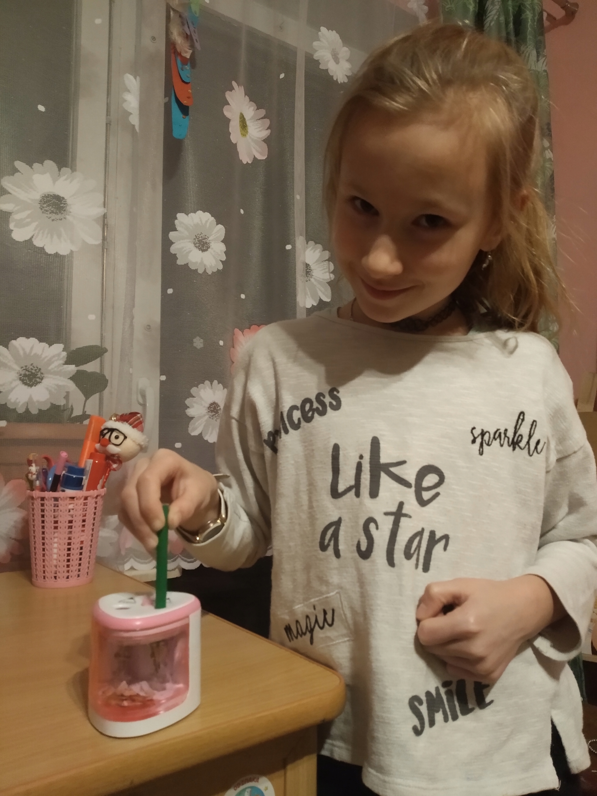 Thanks to the shavings container, the desk will be clean and the crayons and pencils will be perfectly blinked .