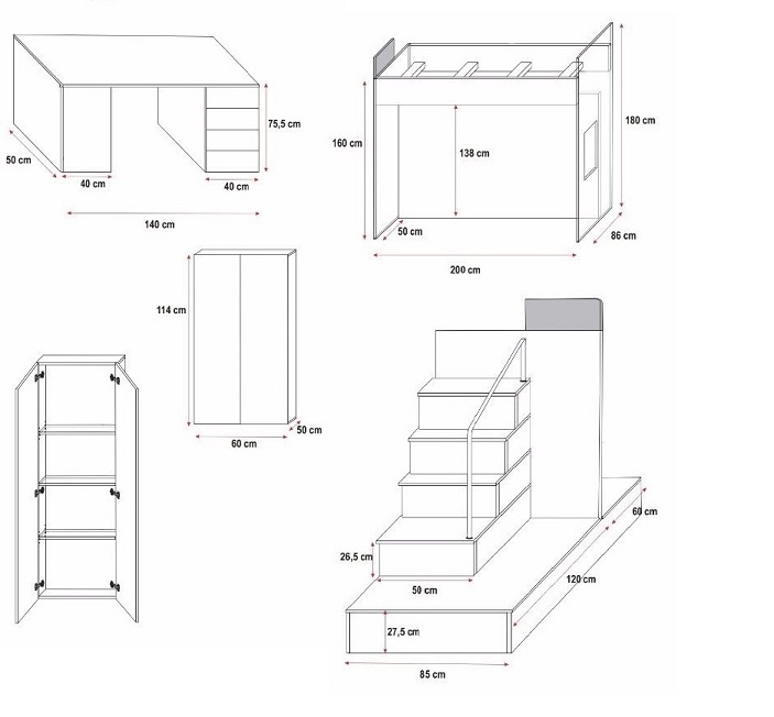 двухъярусная кровать 2 поверхности спального письменный стол, шкаф