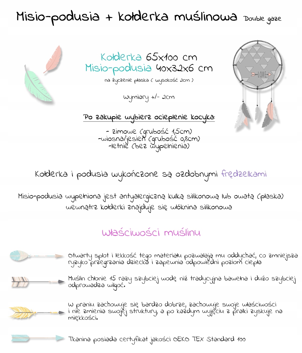 MUŚLINOWA одеяло + Мишка podusia __ Одеяло 65x100
