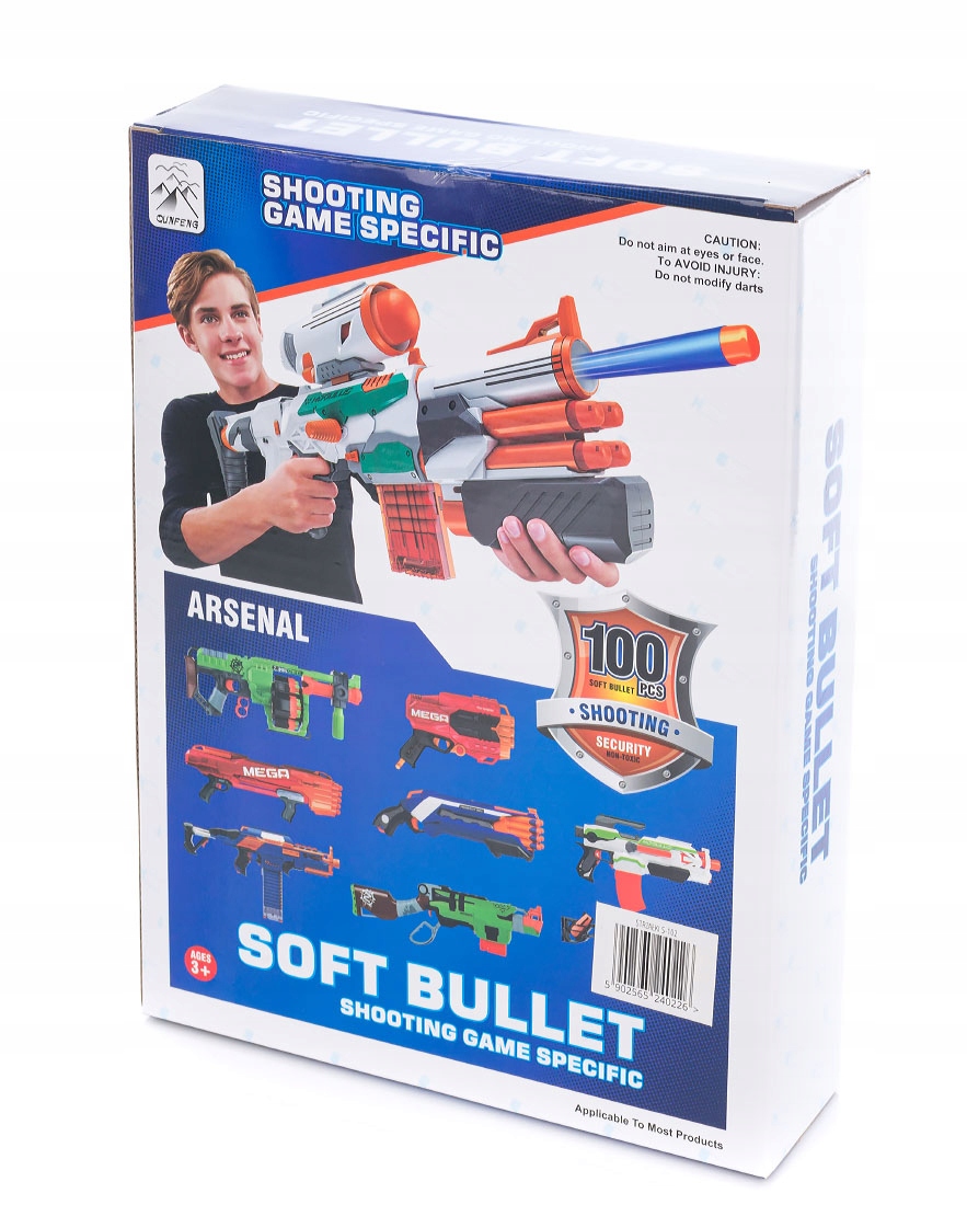 Amunicja do wyrzutni wykonana jest z bardzo lekkiej i miękkiej pianki zakończonej delikatną gumową końcówką dzięki czemu zabawa jest w pełni bezpieczna.