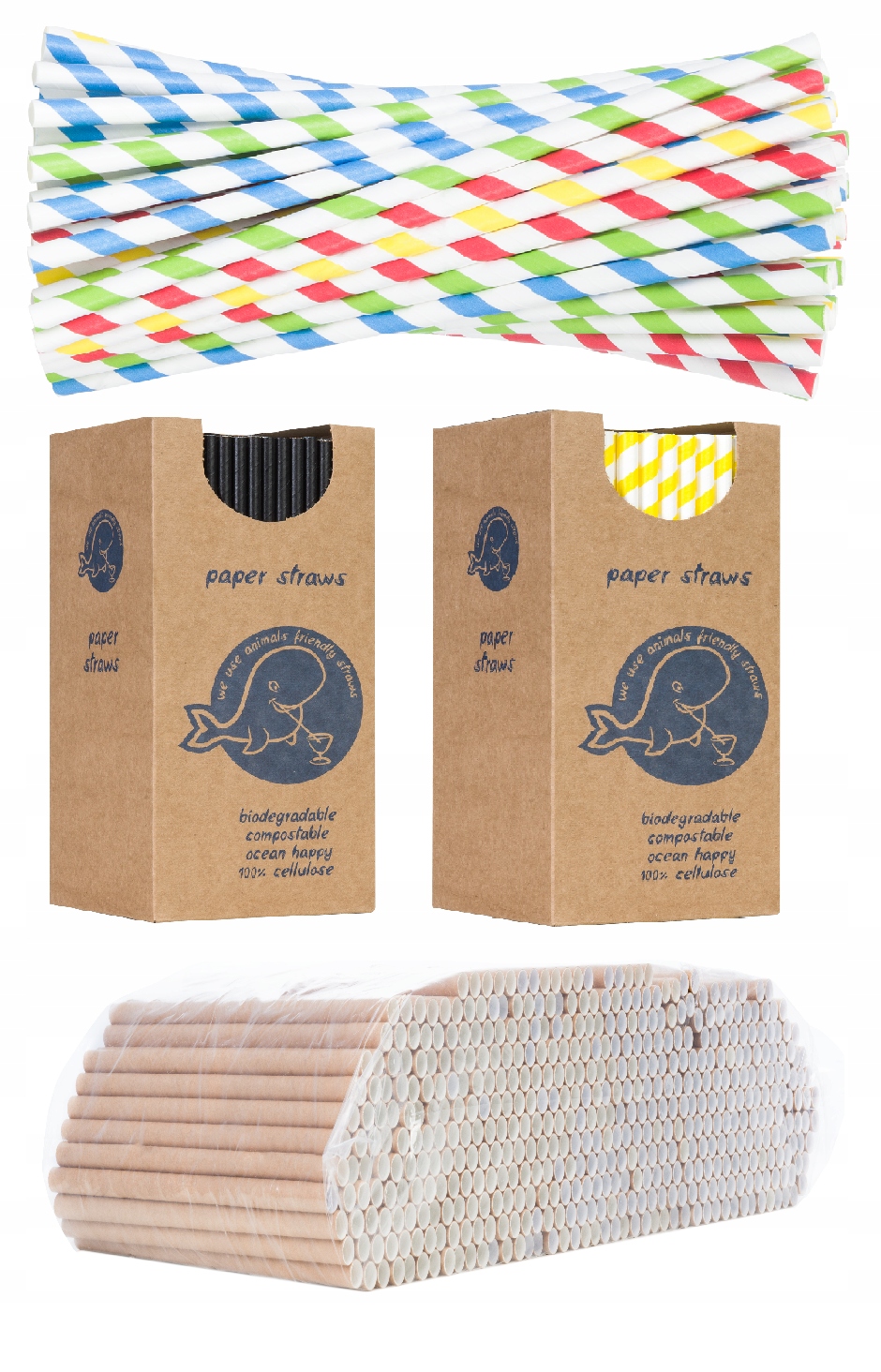 Соломинки экологически чистые бумажные 6/205 мм 500 шт.MIX