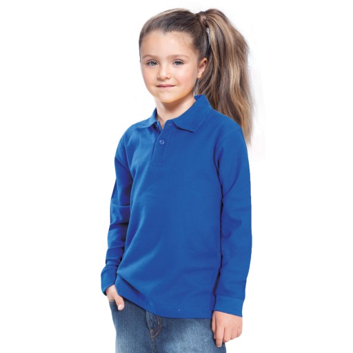 Молодіжна футболка поло з довгим рукавом і шнурком. Застібається на два гудзики. Бічні розрізи. етикетка, що легко знімається. 100% стабілізоване камвольне бавовняне піке.