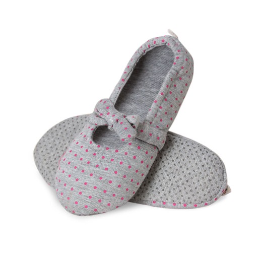 Надзвичайно модні домашні балетки виготовлені з приємного на дотик матеріалу. Хороші шнурки не тиснуть на стопу, утримуючи балетку на ній. Підошва протиковзка і міцна.