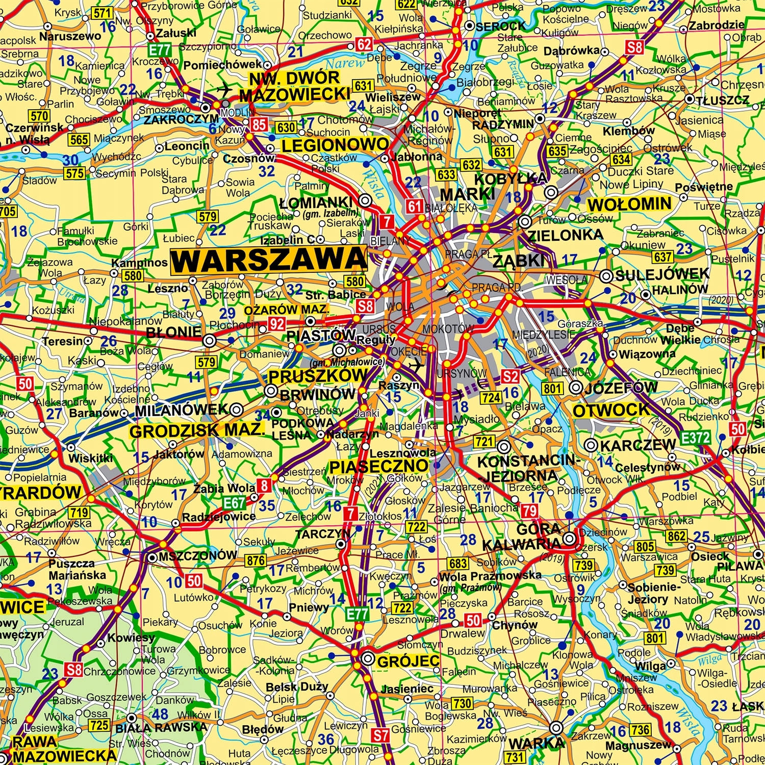 - aktualna sieć dróg i autostrad w Polsce wraz z numeracją,