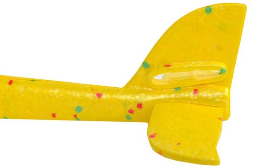 Іграшка виготовлена ззагартований і міцний полістирол.Його легкий дизайн і обтічна форма роблять целітак легко ширяє в повітріВін має два отвори, завдяки яким ми можемовизначитися з траєкторією його польоту. Якщо ми помістимо плавник внизу, він буде ковзати по прямій лінії. Помістивши його у верхній отвір, літак буде виконувати акробатичні прийоми (бочки, вісімки)