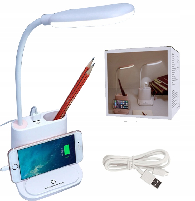 LAMPKA LED Z MOŻLIWOŚCIĄ ŁADOWANIA TELEFONU I PRZYBORNIKIEM
