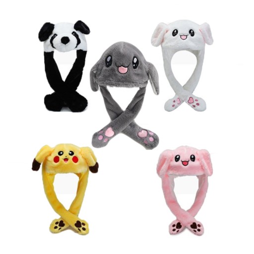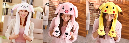 ! Шапка кролик з рухомими вушками! Щоб підняти одне з вух (або обидва відразу), просто стисніть звисаючі вуха!
