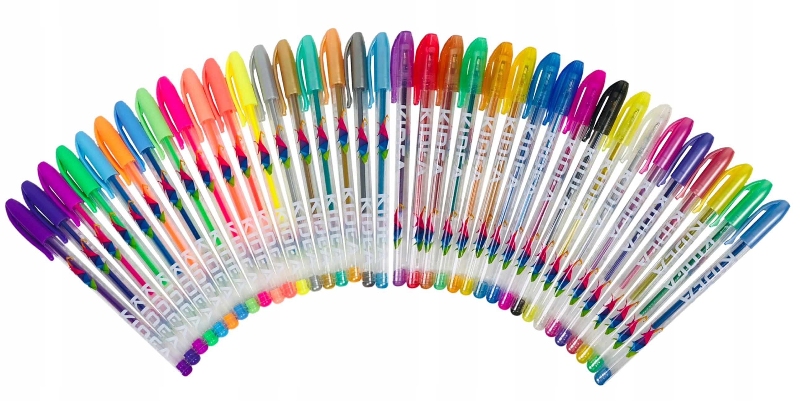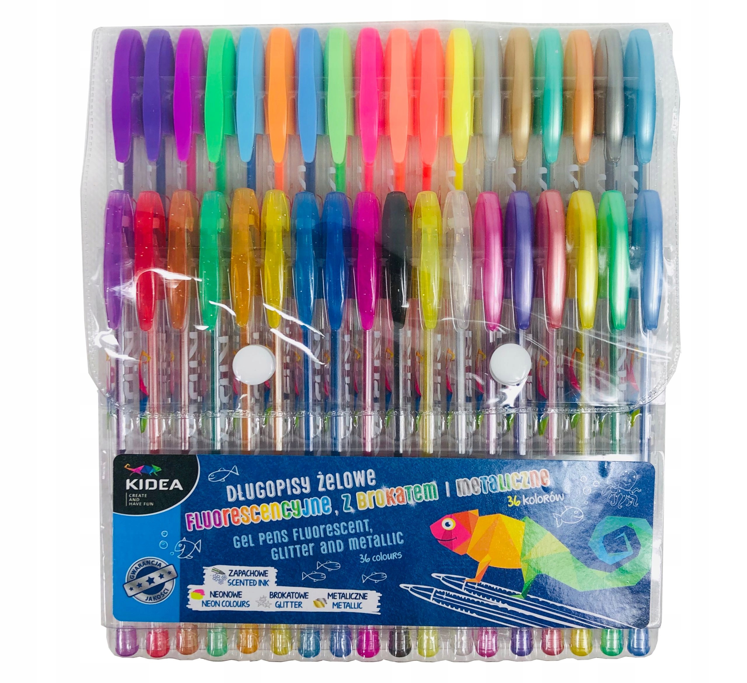 Długopisy żelowe fluorescencyjne brokatowe metaliczne zapachowe KIDEA 36 kolorów
