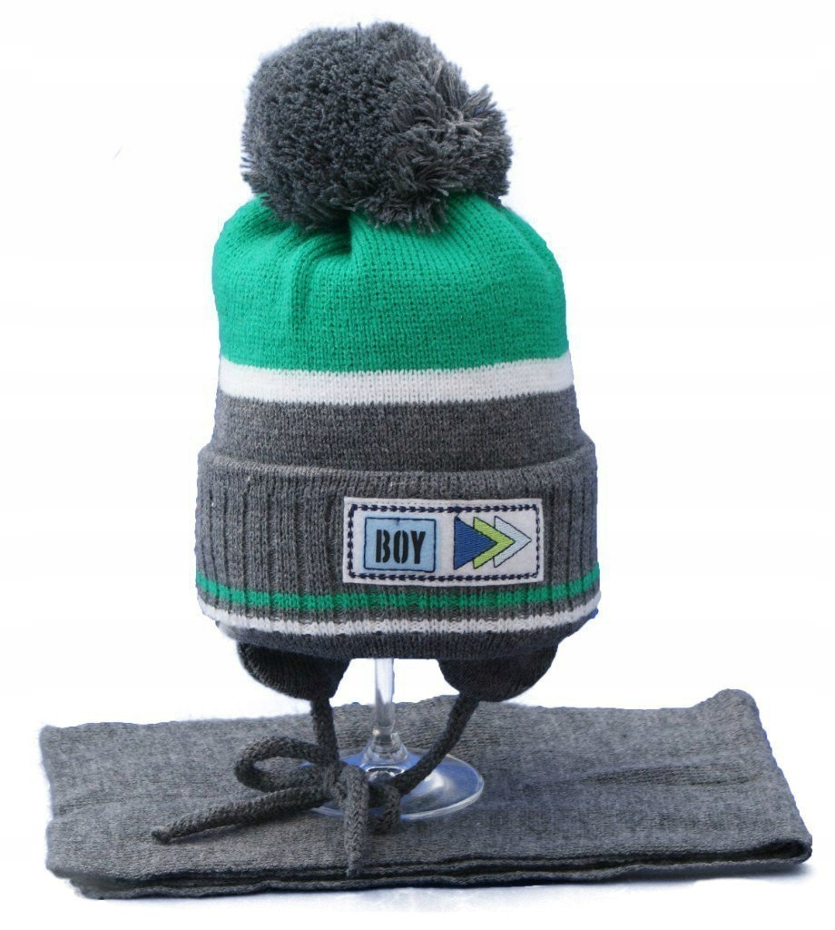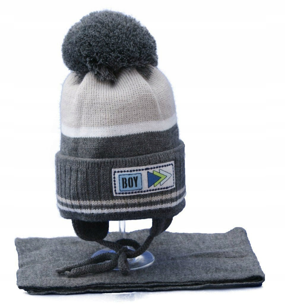 Komplet chłopięcy składający się z czapeczki i szaliczka.