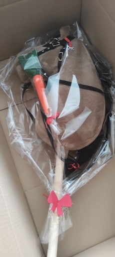Вказана ціна за коня кольору мокко з чорною гривою та білий варіант з палицею, вуздечкою, поводами, лоном та безкоштовними подарунками: медальйоном коня, що скаче (біля вуздечки) та морквиною.