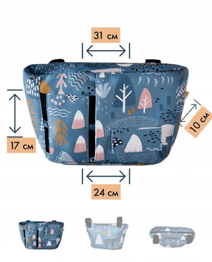 Wygodna i praktyczna torba do wózka, którą możesz zawiesić zarówno na rękojeści wózka jak i z boku.