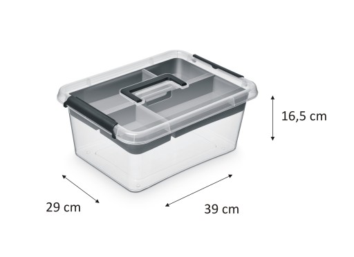 Виготовлений з міцного прозорого пластику, що забезпечує довгий термін служби. Ручка зверху дозволяє легко носити все це, а затискачі з боків запобігають його відкриванню.
