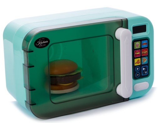 Коли ви натискаєте кнопку ON, починається велике задоволення. Світло духовки ввімкнеться, а тарілка всередині почне обертатися. Натисніть кнопку OPEN, щоб відкрити дверцята духовки. Він знає, як розігріти свою страву. Після закінчення часу дістаньте готову страву з духовки. Імітація посуду включена.