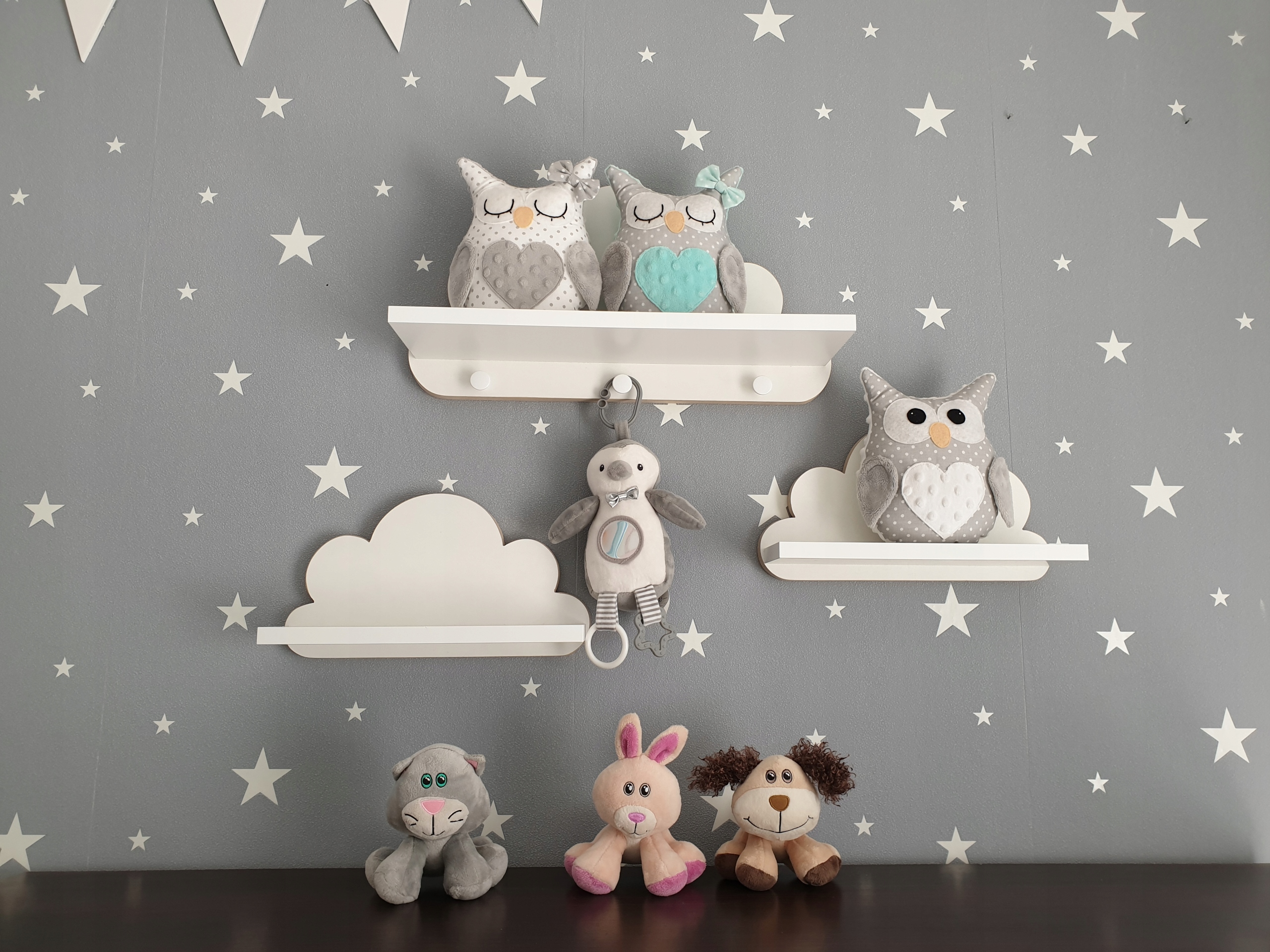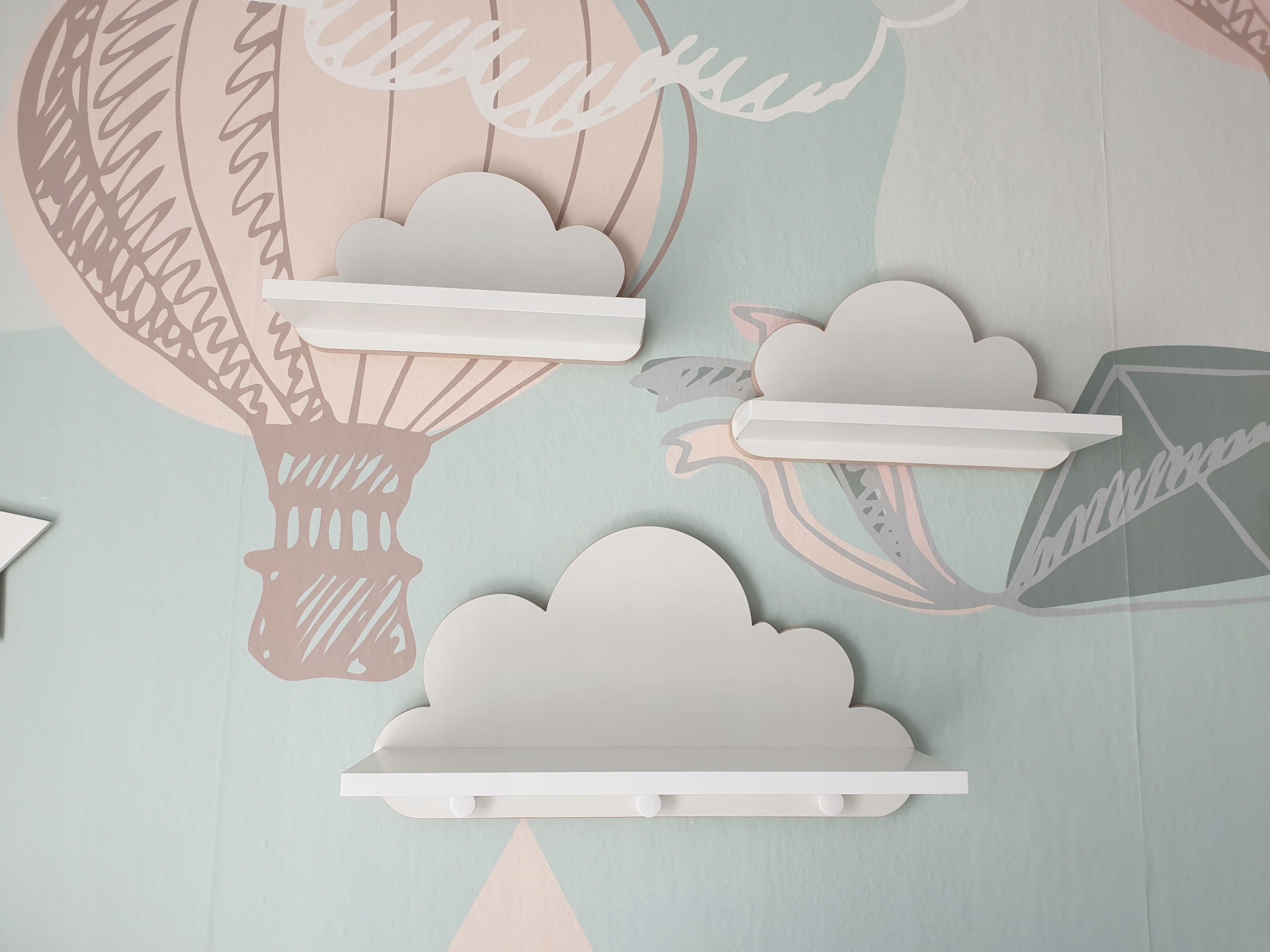 - Półki wykonane w stylu skandynawskim, cechuje je prostota połączona z nienagannie wypracowanym designem. Boki chmurek nie są malowane, pozostają w kolorze naturalnego MDF,