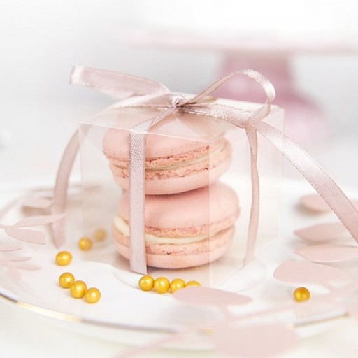Універсальні прозорі коробки – один з наймодніших аксесуарів цього сезону. Завдяки їм можна зробити оригінальні і красиві подарунки для гостей. У них чудово виглядають всі ексклюзивні солодощі, наприклад, мигдаль в глазурі, шоколадні цукерки або рафаелло.