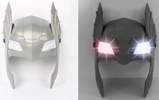 Крім того, завдяки діодам, розміщеним над очима, масказагоряєтьсяначервоний іблакитний. Просто натисніть кнопку