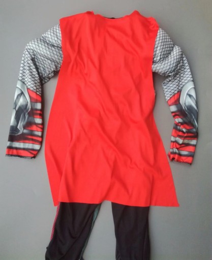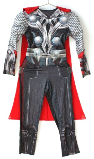 Один шматокчорно-сірий костюм Тора з червоною накидкою.Добре пошита, трохи еластична, застібається на блискавку. Завдяки нашій пропозиції кожен фанат коміксів «на щастя» перетвориться на свого улюбленого героя. Цікавий костюм перенесе вас у світ коміксів, який запам'ятає дитинство.