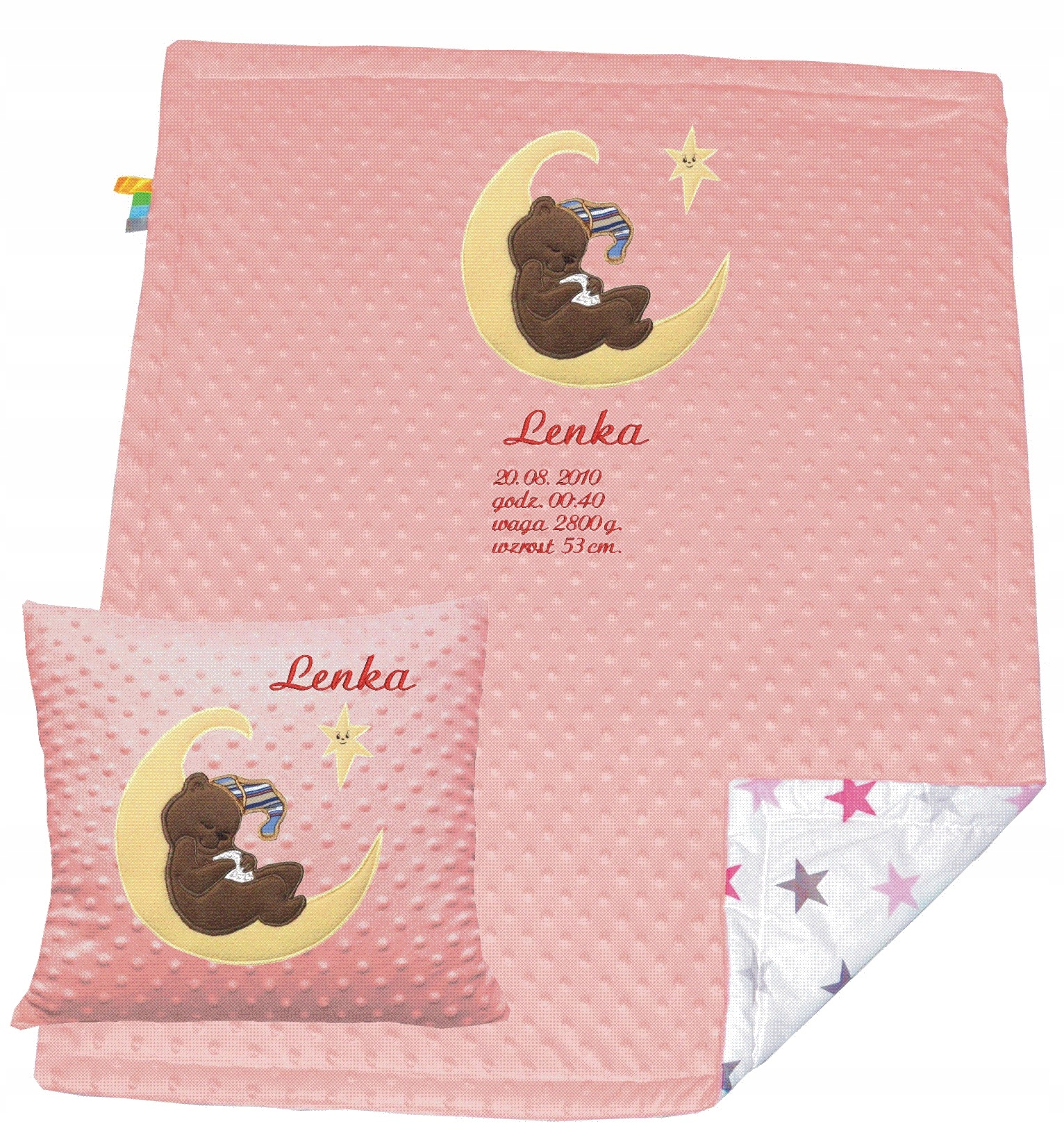 PRZEŚLICZNY KOCYK POLAROWY MINKY Z METRYCZKĄ I IMIENIEM + PODUSZKA Z IMIENIEM
