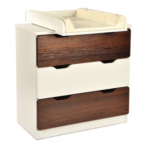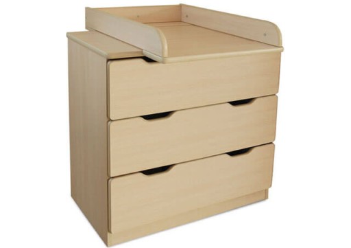 Сучасний масивний комод з пеленальним столиком. Він поєднує в собі простоту та елегантність. Виготовлений з меблевого щита товщиною 18 мм, обробленого товстим ПВХ шпоном. Ящики на напрямних гарантують комфортне використання. Комод має знімний пеленальний столик, який дуже корисний у догляді за дитиною. Коли дитина підросте, можна прибрати пеленальний столик і використовувати комод як самостійний предмет меблів.