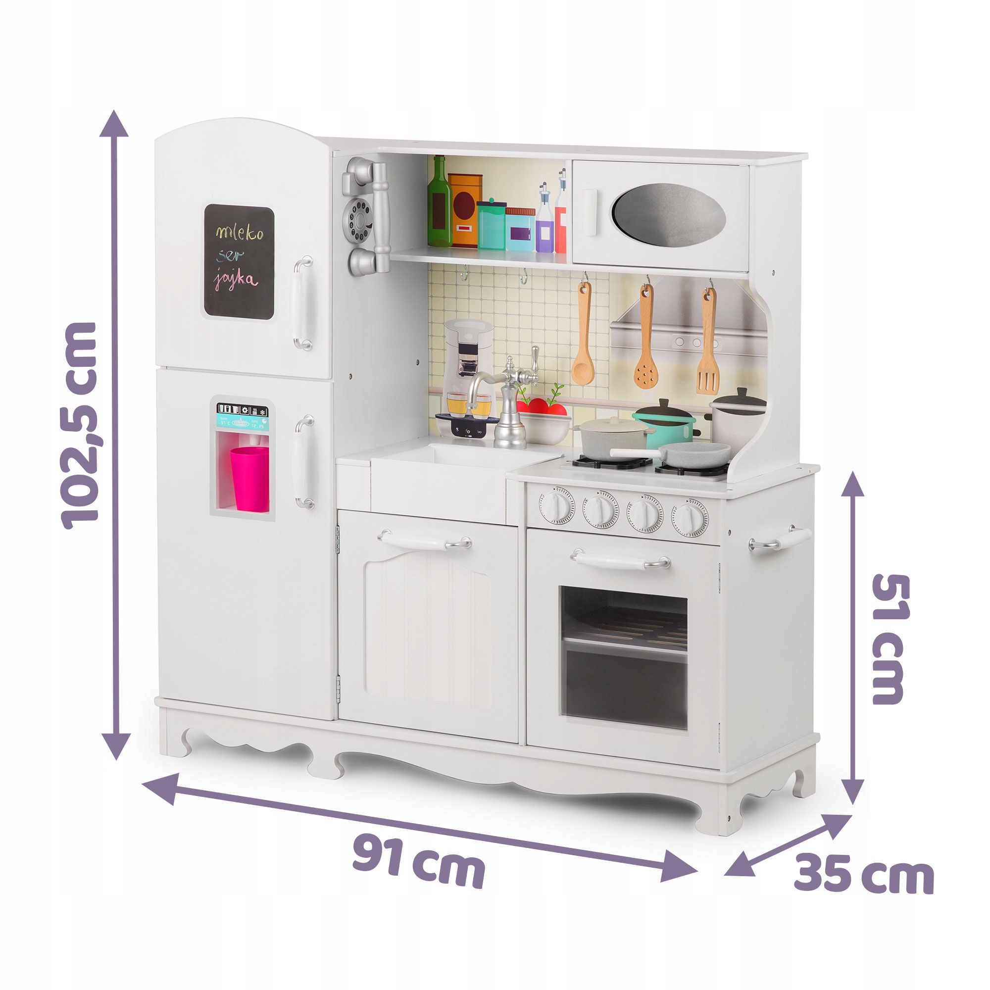 - wymiary kuchni: 102,5 x 91 x 30 cm