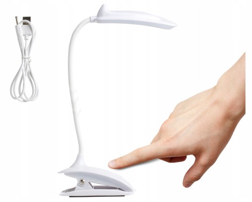 Це дуже функціональна лампа, яка ідеально підійде для роботи чи навчання. Невеликий за розміром, з кліпсою, ідеально підійде навіть в невеликому просторі. Завдяки гнучкому кронштейну ми можемо направляти світло в будь-якому напрямку. Оснащений сенсорною панеллю. Джерелом світла є вбудовані світлодіоди. Має нековзку основу. Ви можете вільно розташувати лампу на столі або зачепити її за край столу, економлячи місце, після зарядки вона працює без проводів. Надійний під час читання книг, виконання домашніх завдань або перегляду веб-сторінок на планшеті. Живиться від кабелю, що входить в комплект. Можна підключити до комп'ютера, планшета, ноутбука.