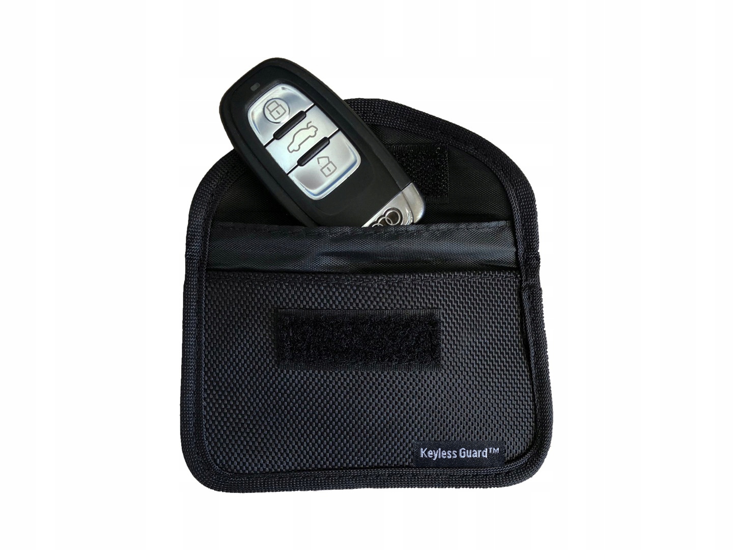 Prezentujemy zabezpieczenie marki KeylessGUARD przed kradzieżą samochodu na tzw. walizkę oraz zabezpieczenie kart kredytowych PAYPASS przed skopiowaniem. Dzięki specjalnemu materiałowi wykorzystanemu w etui sygnał kluczyka SMART KEYLESS GO nie jest emitowany poza etui, dzięki czemu nie może zostać przechwycony. Zaleca się również zastosowanie etui na kluczyk zapasowy, gdyż i on może zostać przejęty, nawet gdy znajduje się schowany w domu.