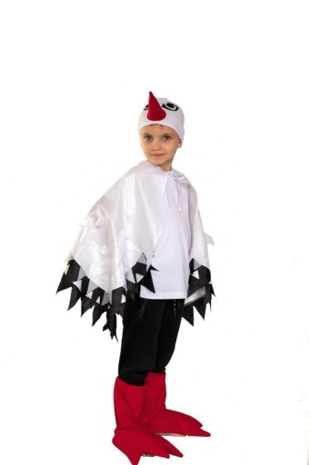 Костюм лелеки у вигляді бахіл, чорно-білих крил і шапочки з довгим червоним дзьобом, з гумкою ззаду, що дозволяє регулювати окружність.