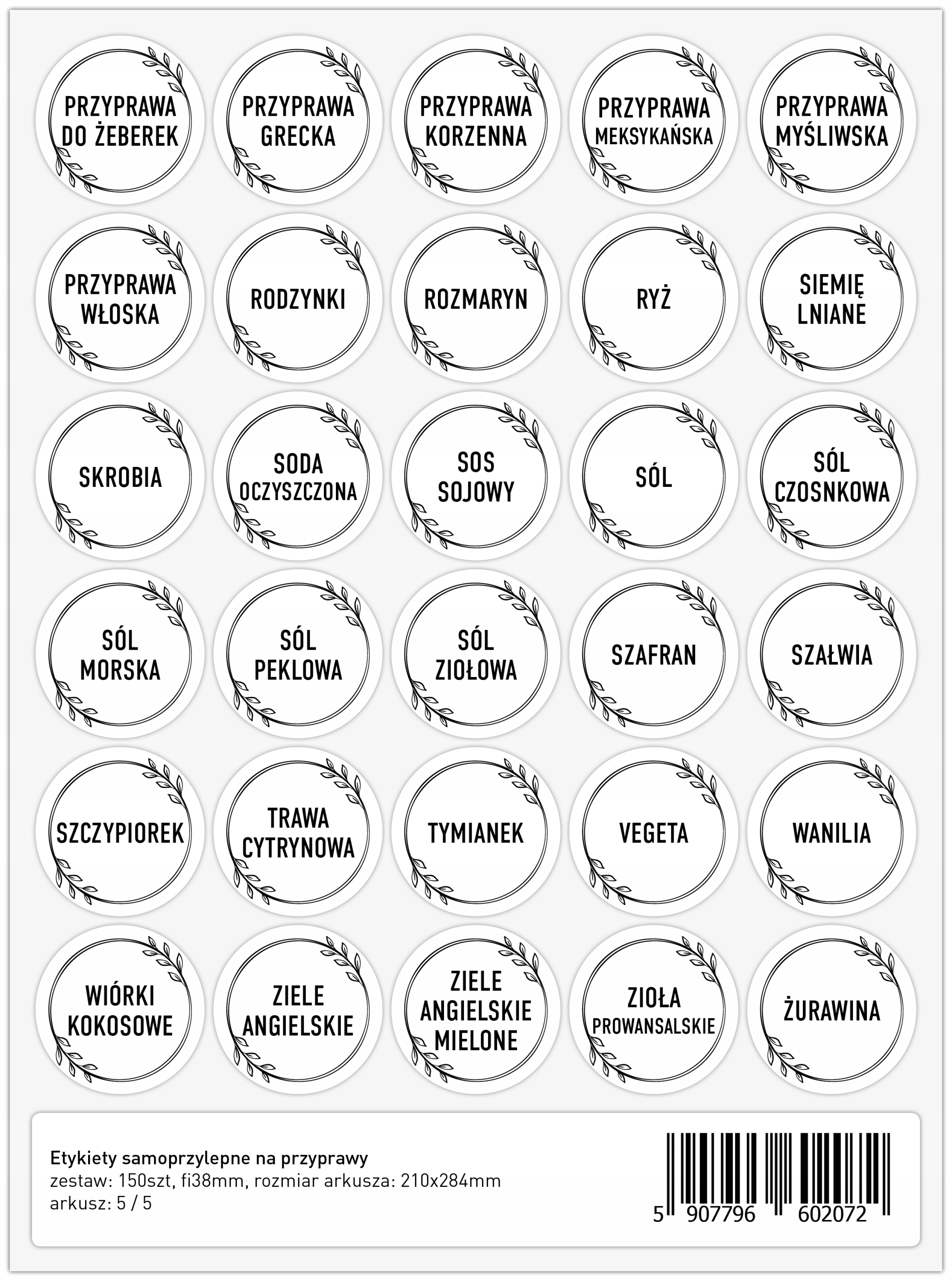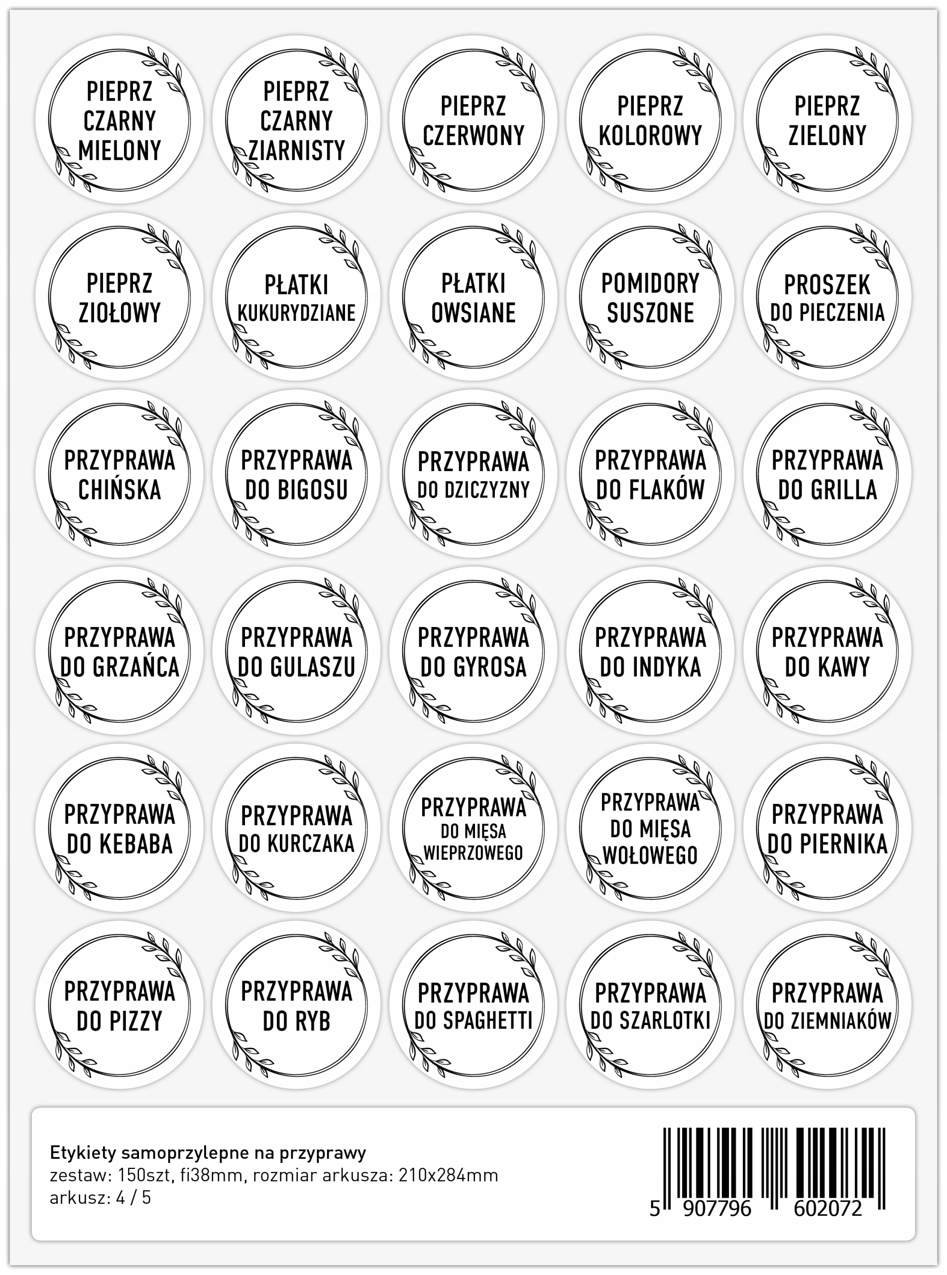 Etykiety samoprzylepne / naklejki na przyprawy, zioła, produkty – zestaw biały